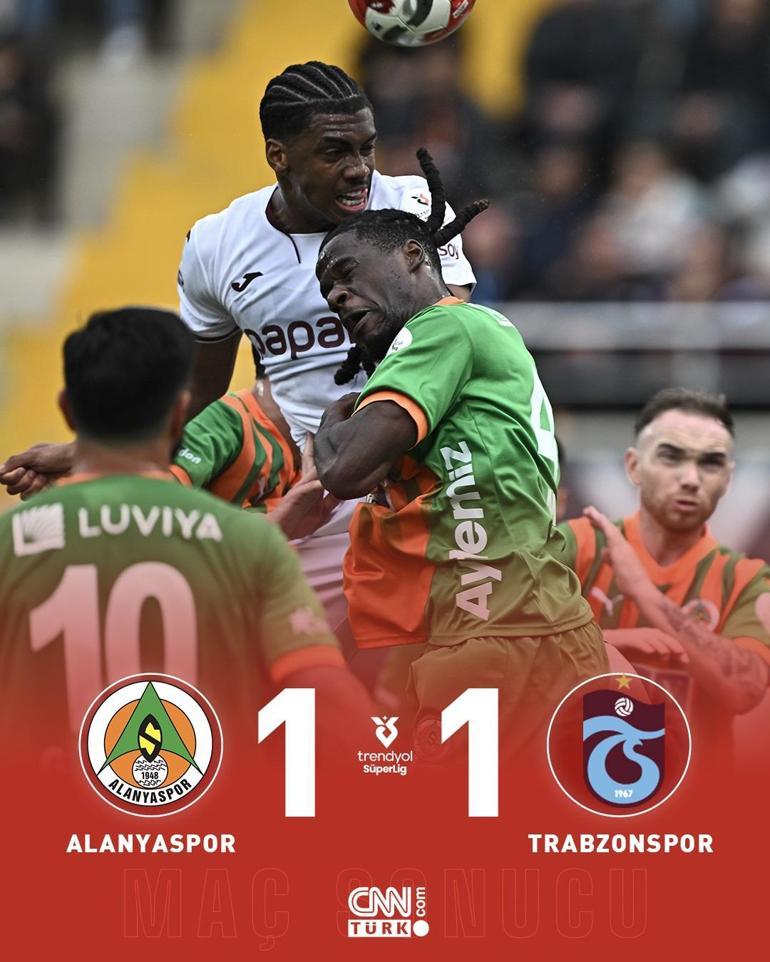 Trabzonspor kornerde golle burun buruna geldi. Karamboldeki topu yakalayan Alanyaspor kalecisi Victor, Nwakaeme tarafından faule maruz kaldı. Tecrübeli futbolcu gole çok yaklaşmıştı.