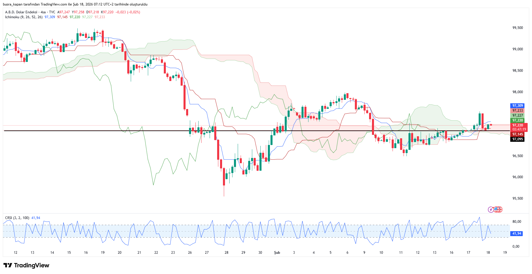 Dolar endeksi, jeopolitik risklerin piyasaları temkinli tutması ve yatırımcıların ABD Merkez Bankası’nın (Fed) Ocak ayı toplantı tutanaklarını beklemesiyle gücünü korudu. Dolar endeksi 97,22 puanda hareketleniyor.