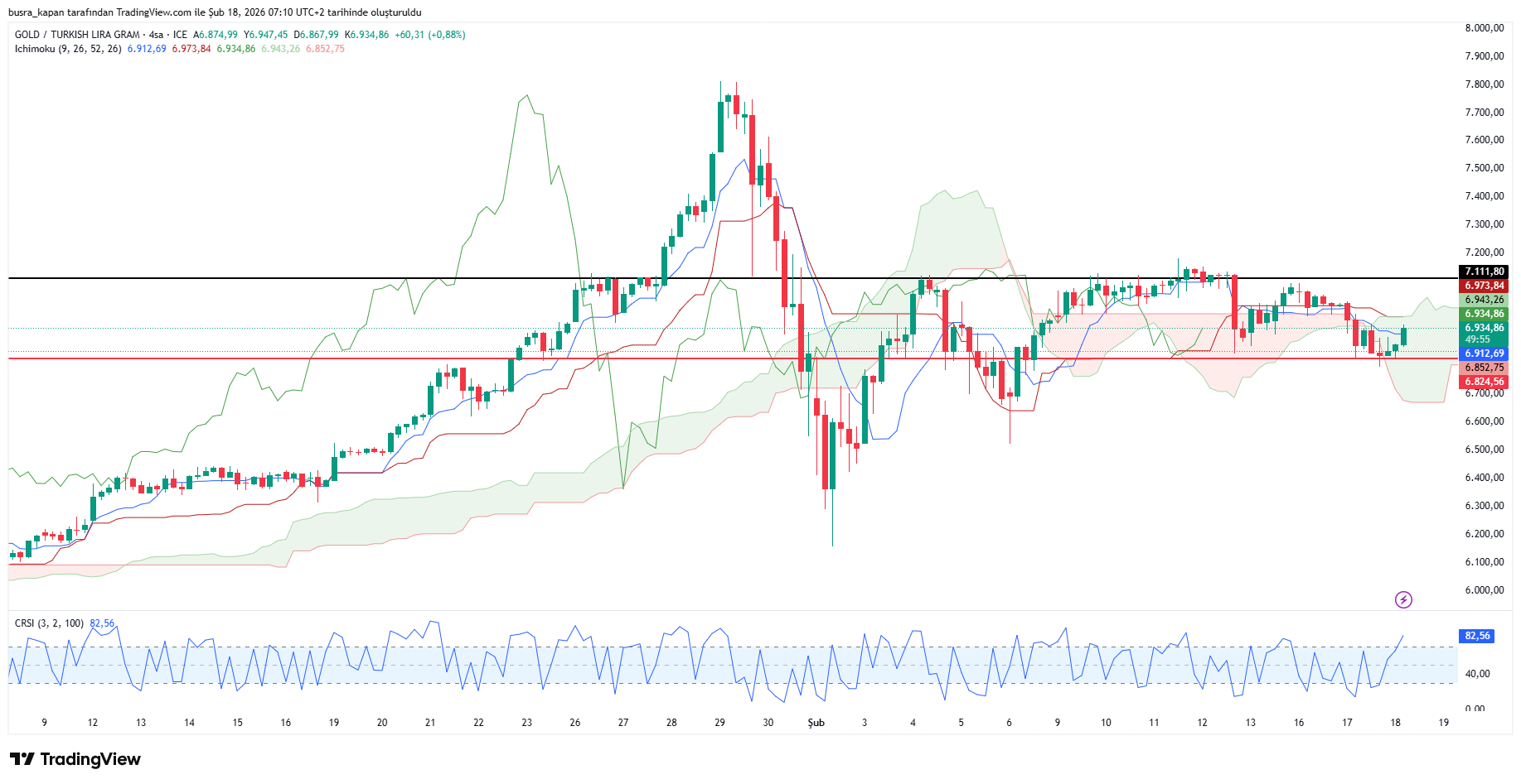 Dün yaşanan görüşmelerin etkisiyle 6 bin 796 liraya gerileyen gram altın, bugün ons altın tarafında yaşanan yükselişle birlikte yönünü yukarı çevirdi. Gram altın bugün sabah seansında 08.08'de 6 bin 934 lirada bulunuyor.