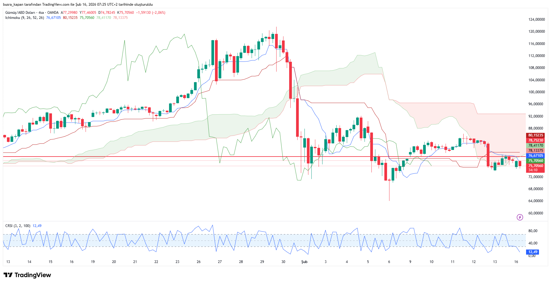 Gümüş fiyatları yeni haftaya düşüşler başladı. Ons gümüş bugün sabah sansında saat 08.11'de 75,66 dolarda hareketleniyor.