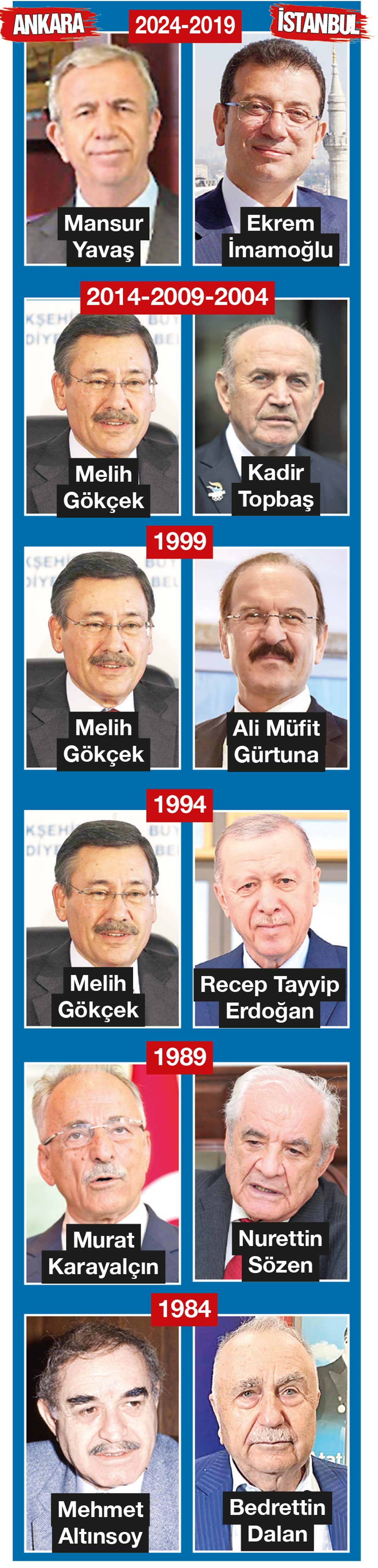 1963 seçiminden bu yana, 13’üncü seçimde de şablon tıpatıp oturdu, İstanbul ve Ankara’yı aynı partinin adayı kazandı.