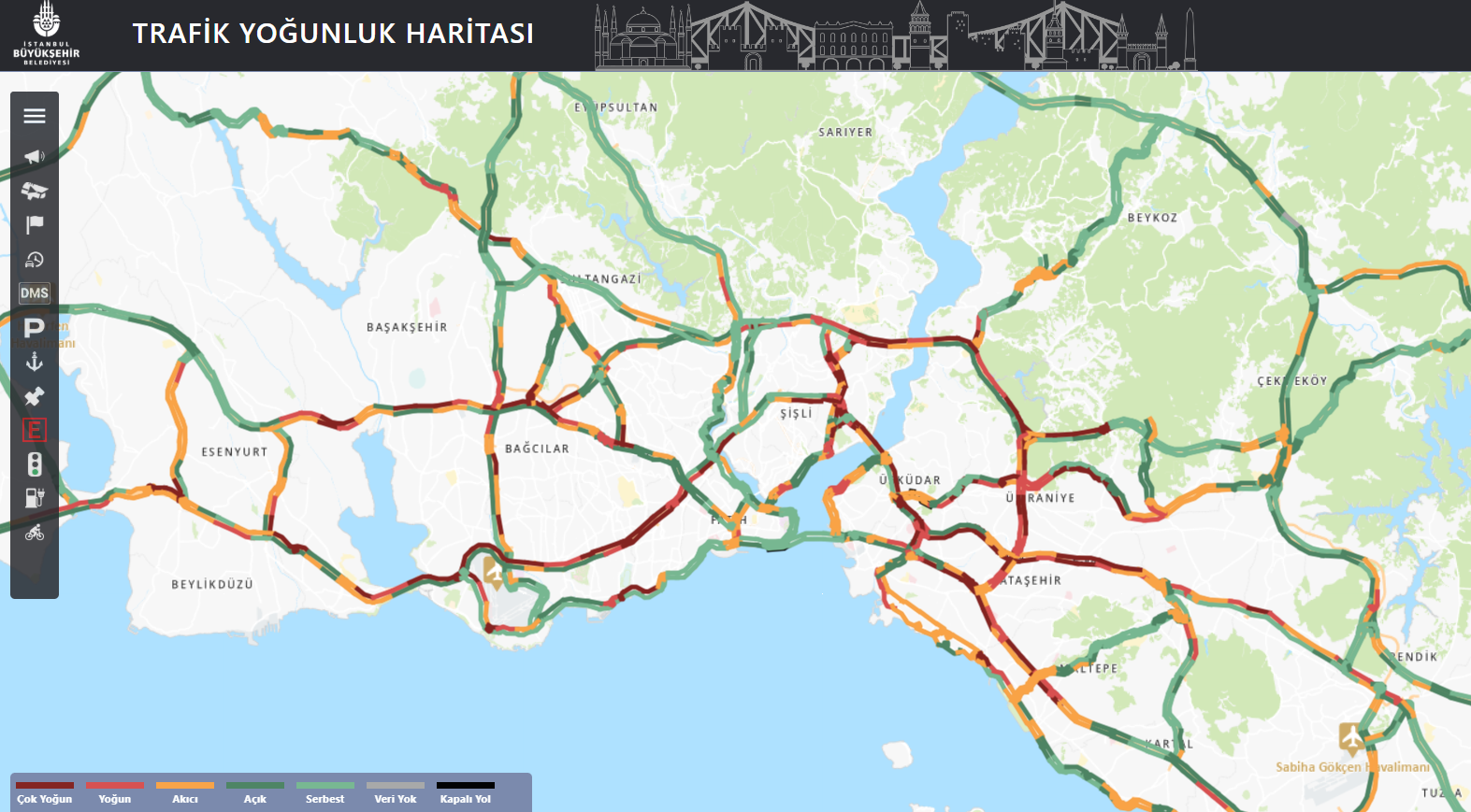 TEM Otoyolu’nda Hasdal ve Seyrantepe’den başlayarak Fatih Sultan Mehmet Köprüsü’ne kadar olan kesimde yoğunluk etkili oldu. Büyükdere Caddesi’nde Sarıyer yönünde ve Levent’te TEM’e katılım noktalarında araçlar yavaş seyretti.
