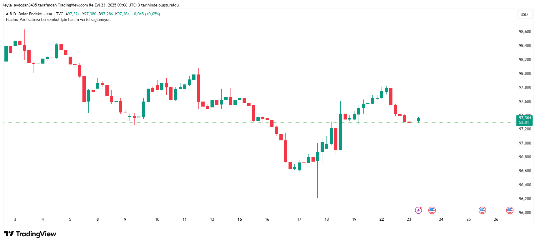 Dolar endeksi ise 97,82 seviyesinden yüzde 0,48 değer kaybıyla 97,35 seviyesinde hareketleniyor.