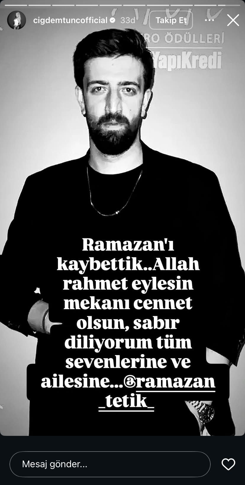 Vefat haberini oyuncu Çiğdem Tunç, sosyal medya hesabından yaptığı paylaşımla duyurdu.