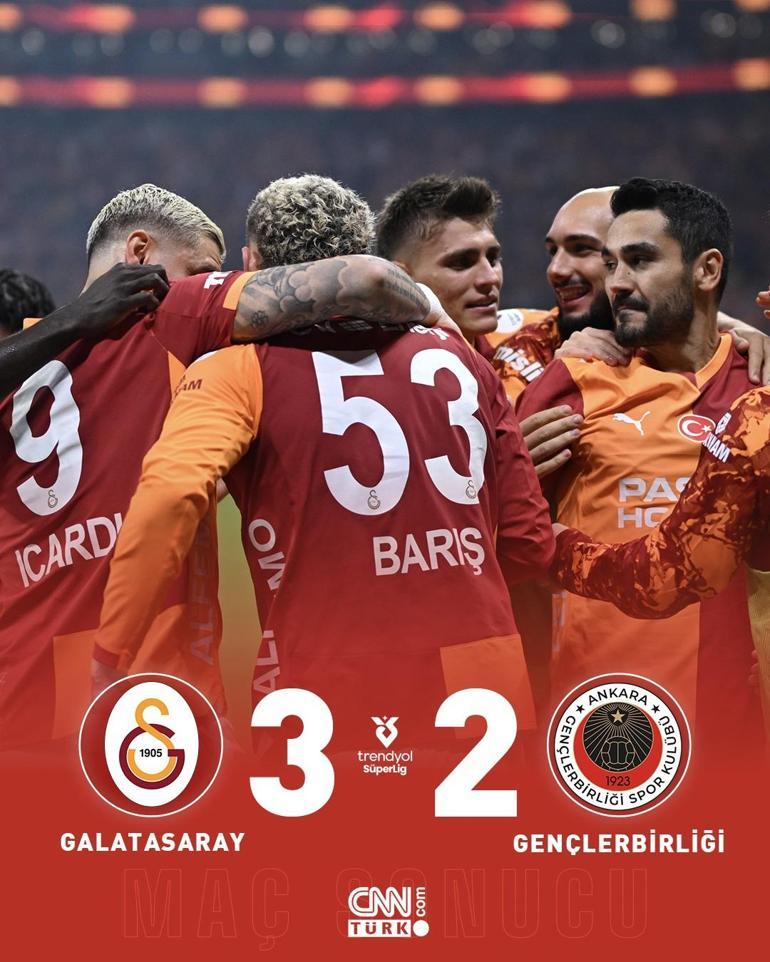 Lider Galatasaray, derbi öncesi kayıpsız geçtiği haftayı 32 puanla kapattı. Gençlerbirliği ise 11 puanda kaldı.