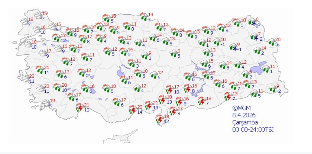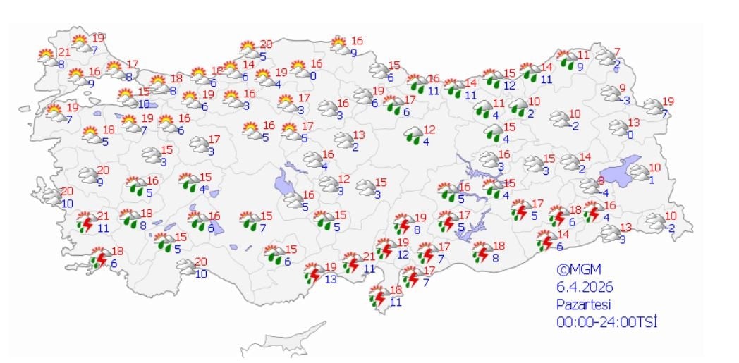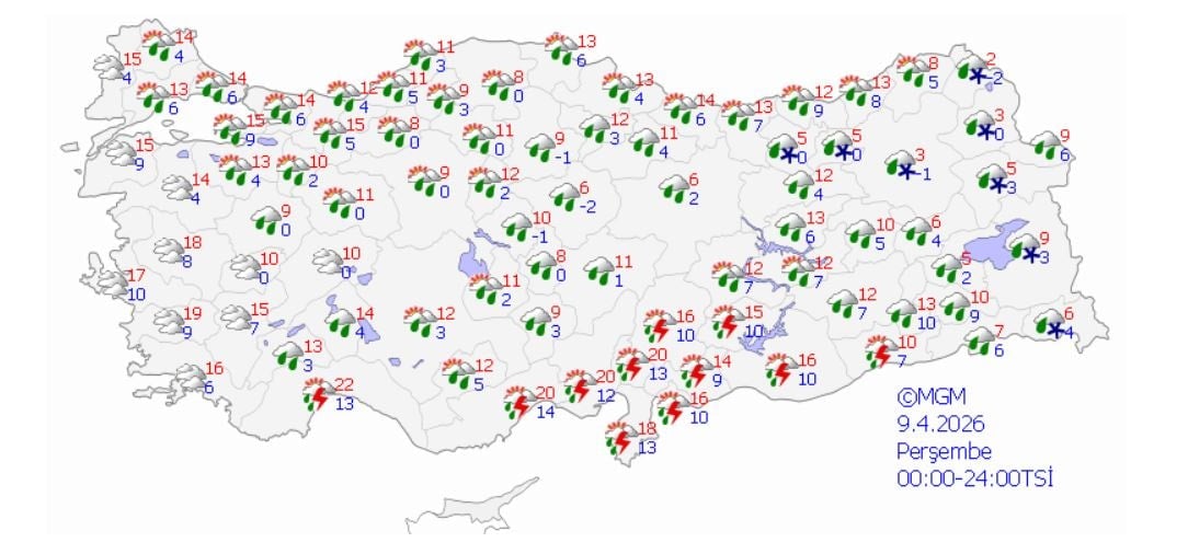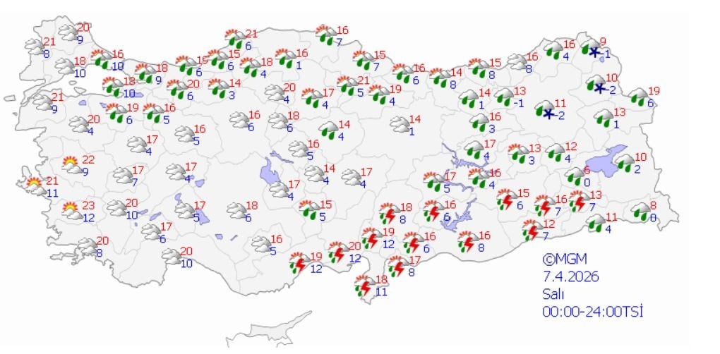 Yağışların çoğunlukla yağmur ve sağanak şeklinde olacağı, kıyı Ege ve Akdeniz ile Güneydoğu Anadolu’nun bazı noktalarında gök gürültüsünün eşlik edebileceği ifade ediliyor. Doğu Anadolu’nun kuzeydoğusundaki yüksek alanlarda ise yağışların zaman zaman karla karışık yağmur ve kar biçiminde olabileceği belirtiliyor.
