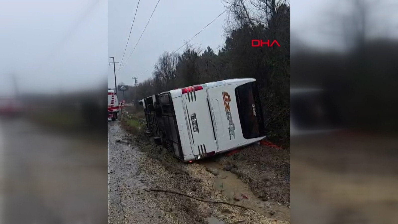 İstanbul Çatalca'da bugün öğleden sonra henüz belirlenemeyen bir nedenle trafik kazası meydana geldi. Sürücüsünün kontrolünden çıkan yolcu otobüsü, yoldan çıkarak devrildi. Kazanın ardından çevredeki sürücülerin ihbarı üzerine bölgeye vakit kaybetmeden itfaiye, emniyet ve 112 Acil Sağlık ekipleri yönlendirildi. Otobüs içerisinde mahsur kalan vatandaşların olup olmadığını tespit etmek ve yaralılara müdahale etmek için ekiplerin koordineli çalışması devam ediyor.