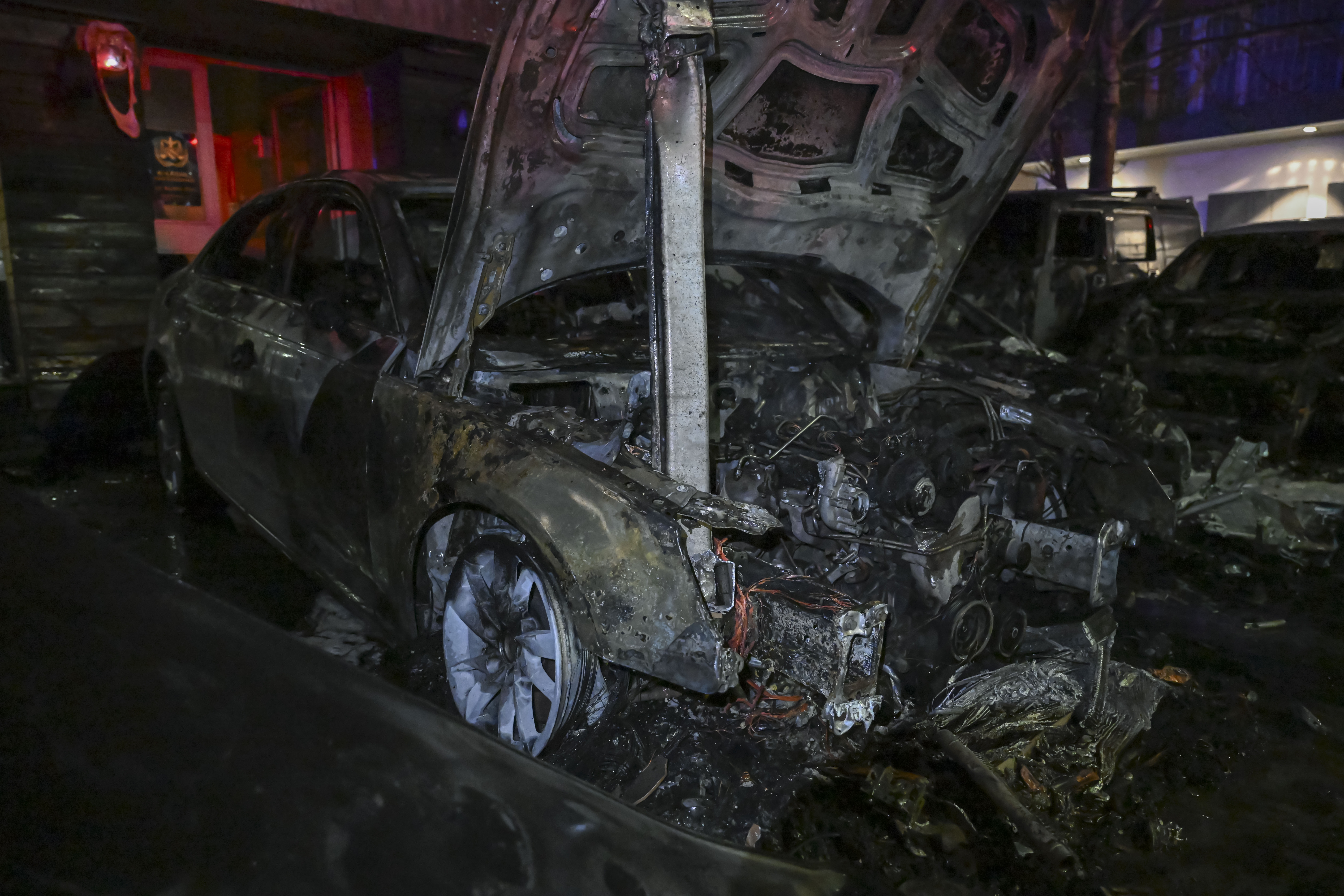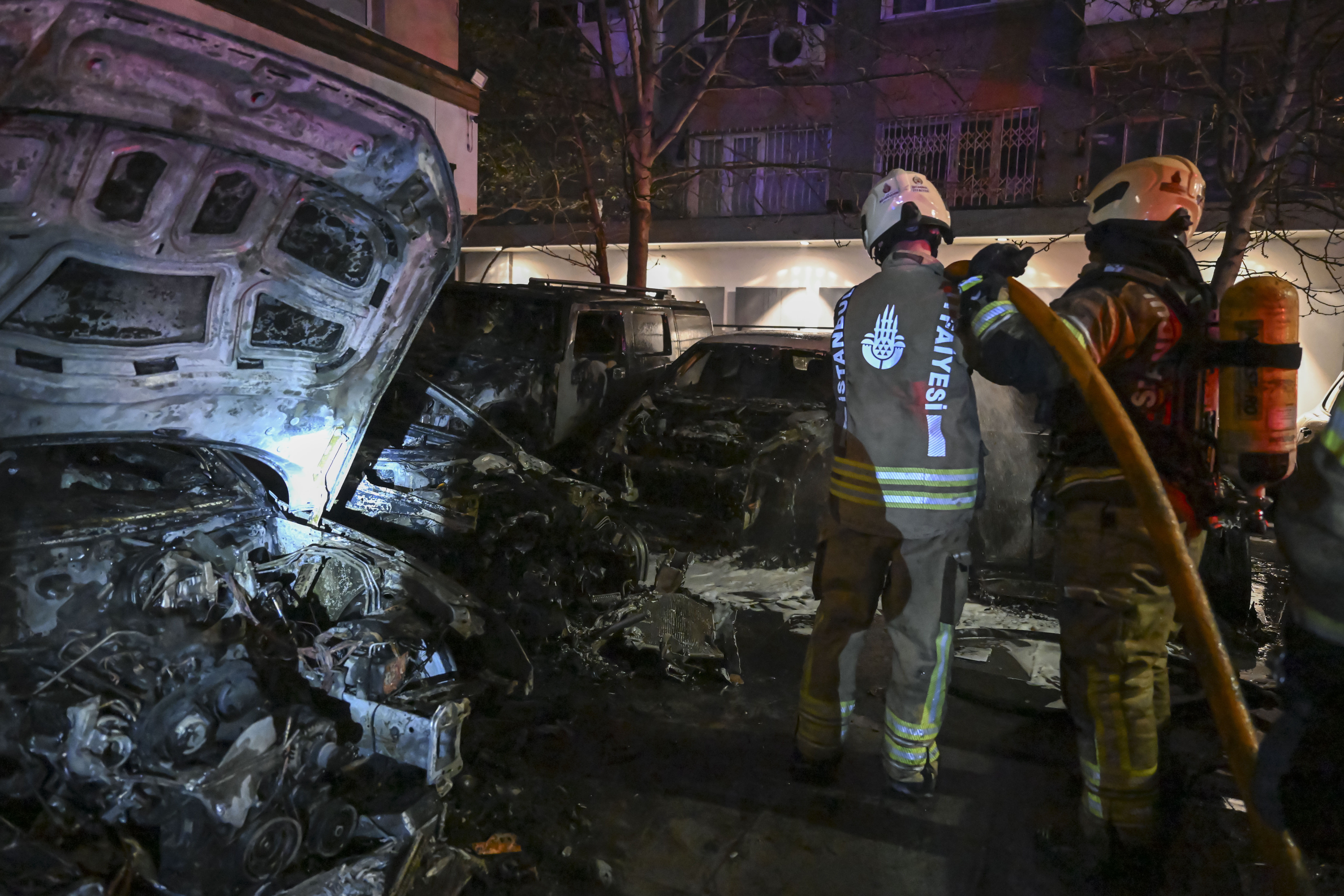 İtfaiye ekiplerinin müdahalesiyle yangın söndürülürken, araçlarda hasar oluştu.