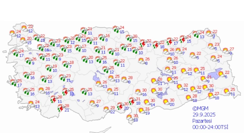 Meteoroloji Genel Müdürlüğü, yeni hafta ile birlikte yurdun kuzey, iç ve batı kesimlerinde sağanak yağışların etkili olacağını açıkladı. Hava sıcaklıklarının özellikle kuzey bölgelerde mevsim normallerinin 2 ila 4 derece altında seyredeceği tahmin ediliyor.