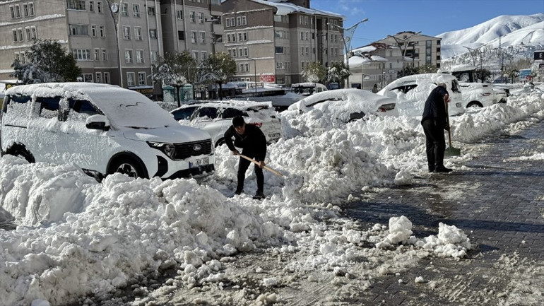 Öte yandan vatandaşlar iş yerlerinin önünde biriken karları küreklerle temizledi.