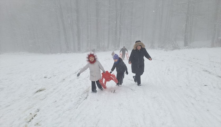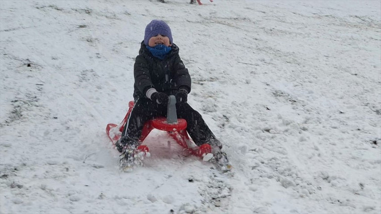 Karın tadını özellikle çocuklar çıkardı. Plastik kızaklarla kayan çocuklar keyifli vakit geçirdi.