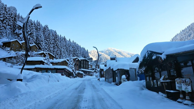 Çamlıhemşin ilçesinin önemli turizm merkezlerinden Ayder Yaylası'nda kar kalınlığı yaklaşık 80 santimetreye ulaştı.