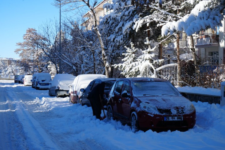 Vatandaşlar sabahın erken saatlerinde araçların üzerinde biriken karı temizlemekte zorlandı. Yapılan son değerlendirmelere göre Erzurum ve bölge genelinde havanın parçalı ve çok bulutlu geçeceği; sabah ve gece saatlerinde buzlanma ve don olayı ile birlikte pus ve yer yer sis hadisesi görüleceği tahmin ediliyor.
