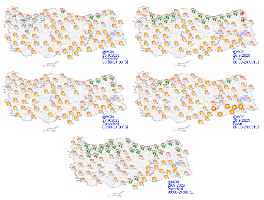 Buna göre, 24 Eylül Çarşamba (bugün) ve 25 Eylül'de (yarın) hava sıcaklıkları devam edecek.