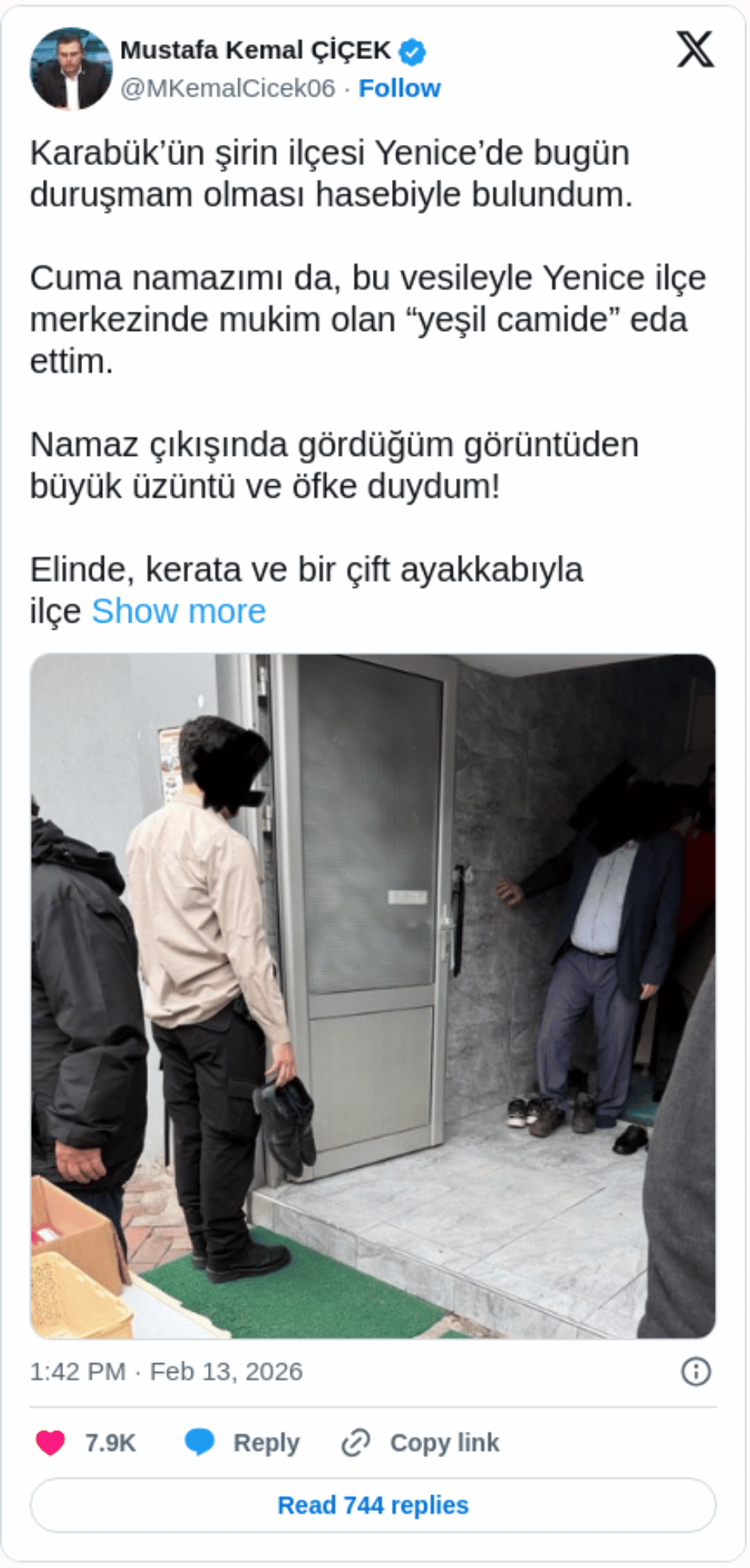 Karabük'ün Yenice ilçesinde bir caminin önünde çekildiği iddia edilen bir görüntü sosyal medyada büyük tepkilere yol açtı.