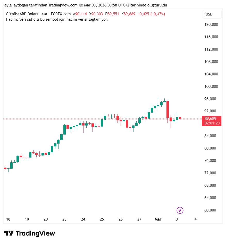 Artan risk algısı diğer değerli metalleri de destekledi. Spot gümüş yüzde 1,4 artışla ons başına 90,67 dolara çıkarak son dört haftanın zirvesini gördü. Sabah seansında kazanımının sınırlı bir kısmını geri vererek 89,69 dolara geriledi.