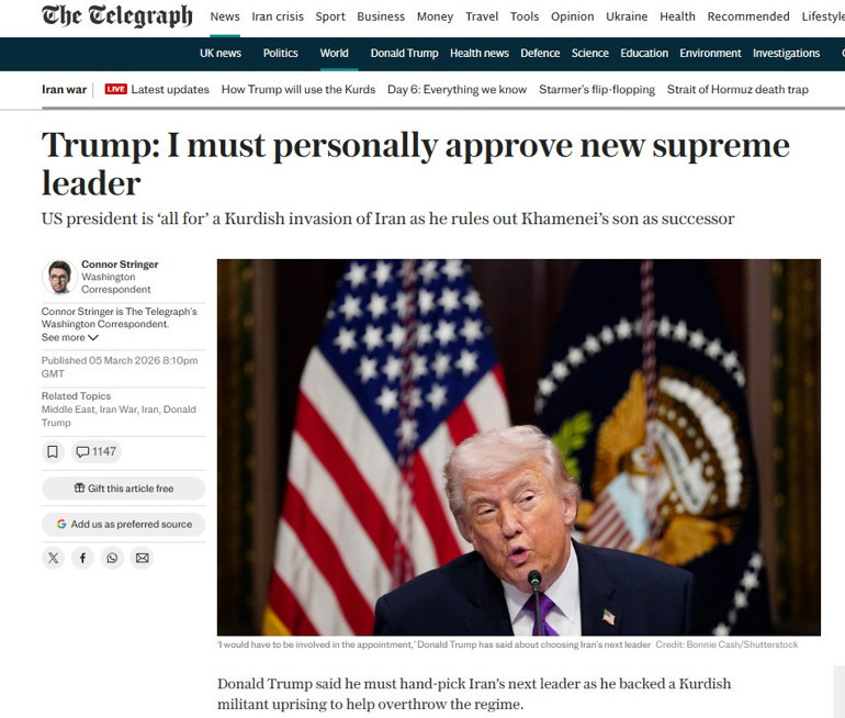 "Hamaney’in oğlu benim için kabul edilemez. İran’a uyum ve barış getirecek birini istiyoruz." diyen Trump İran’ın bir anlaşma yapmak istediğini ancak “artık geç kaldıklarını” ileri sürerek, “Şu anda biz savaşmak istiyoruz, hem de onların istediğinden daha fazla."