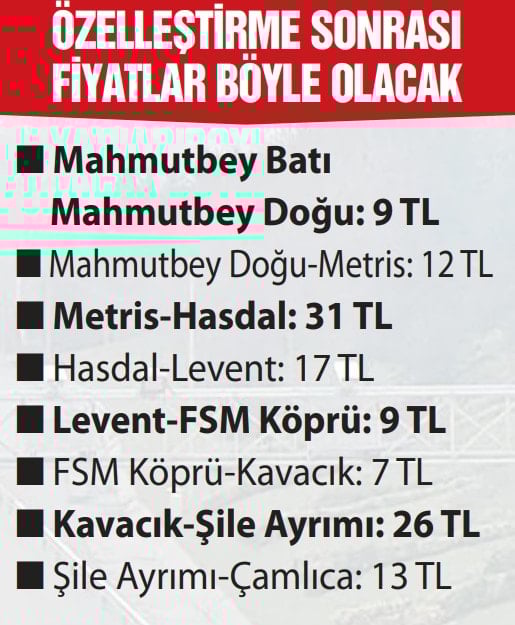 Yavuzyılmaz’ın paylaştığı haritada, Mahmutbey’den başlayıp Fatih Sultan Mehmet Köprüsü üzerinden Anadolu Yakası’nda Çamlıca’ya uzanan hattın ücretlendirilmesi halinde uygulanabileceği öne sürülen geçiş tarifesi de yer aldı.