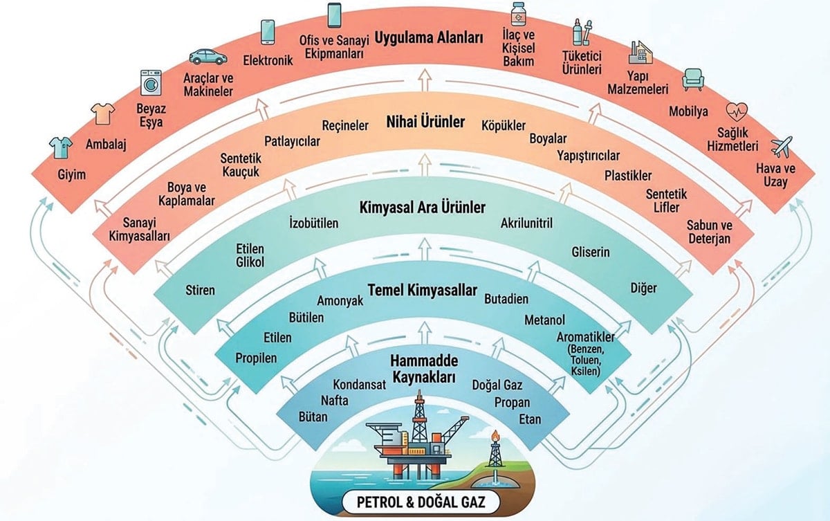 Petrol ve doğalgazın hayatımızda ne kadar çok ihtiyacı karşıladığını gösteren bu grafiği gazeteci Nur Tuğba Aktay sosyal medya hesabından paylaştı.