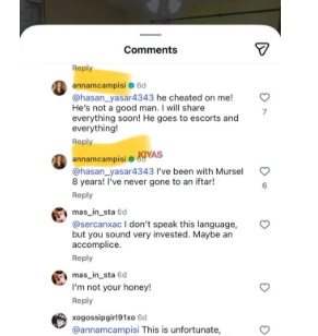 Sosyal medya üzerinden kendisine eşini soran bir takipçisine yanıt veren Anna, Mürsel'in kendisini aldattığını ve iyi bir insan olmadığını öne sürdü. Yakın zamanda tüm detayları kamuoyuyla paylaşacağını belirten ünlü isim, eşinin eskortlara gittiğini iddia etti.