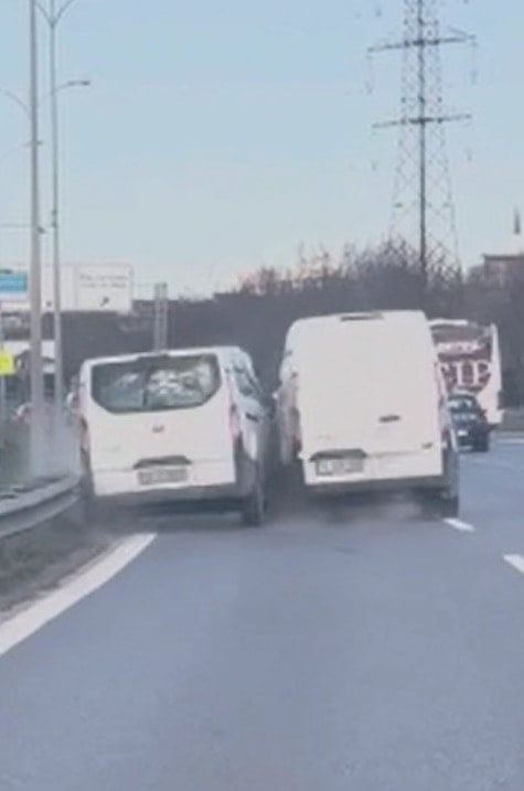 Seyir halindeyken devam eden tartışmada sürücülerden biri, aracını diğerinin üzerine sürdü ve tartıştığı kişiyi bariyerlere sıkıştırdı.