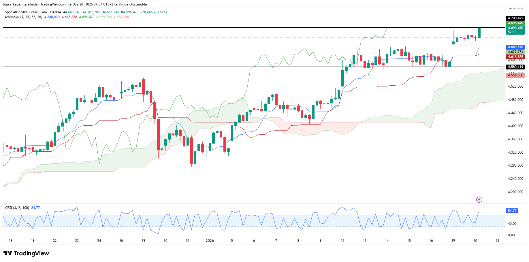 Altın fiyatları jeopolitik gerilimlerin etkisiyle yeni günde yönünü yukarı çevirdi. Ons altın yüzde 0,6 primle tarihinde ilk kez 4.700 doların üzerini gördü. Ons altın bu yükselişiyle yeni bir rekora imza attı.