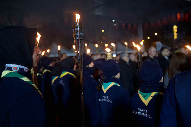 Saat 04.17'de ekipler araçlarının sirenlerini çalıştırdı, ardından katılımcılar saygı duruşunda bulundu.