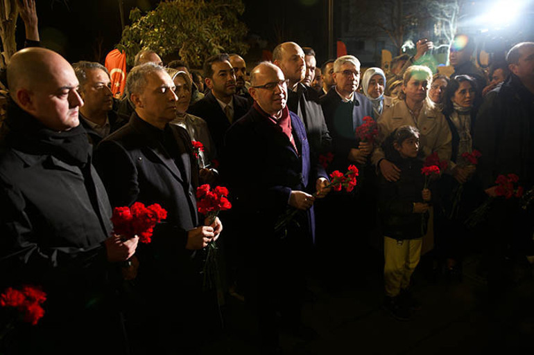 Depremin yaşandığı saat 04.17’de, alana karanfil bırakılarak, mum yakıldı.