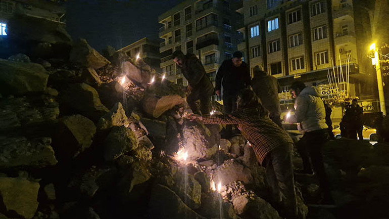 Kahramanmaraş merkezli depremlerde merkez Yenişehir ilçesine bağlı Kooperatifler Mahallesi'ndeki Kurtismailpaşa 2'nci Sokak'ta 48 kişinin hayatını kaybettiği Sözel Apartmanı'nın önüne gelenler, yaktıkları mumlar ile karanfilleri saat 04.17'de alana bıraktı.