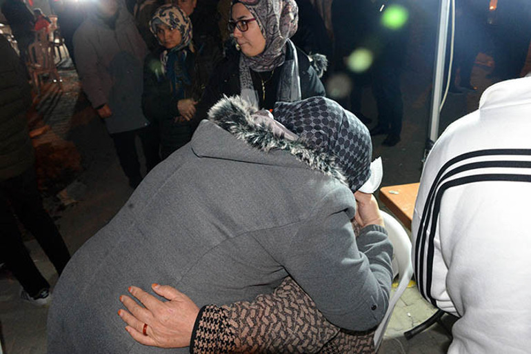 Ziyarette depremzedeler yaktıkları ateşin başında birbirlerine sarılarak gözyaşı döktü.