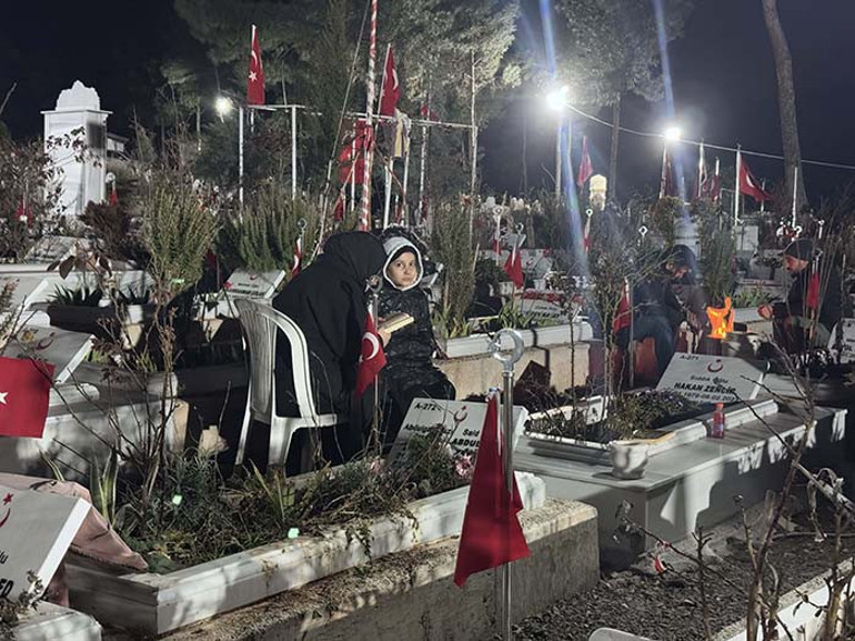 Asrın felaketinin merkez üssü Kahramanmaraş’ta depremde yakınlarını kaybedenler, Kapıçam Şehir Mezarlığı’nda buluştu. Gece saatlerinden itibaren mezarlığa gidenler, 3 yıl önce kaybettikleri sevdiklerinin mezarı başında Kur’an-ı Kerim okuyup dua etti.