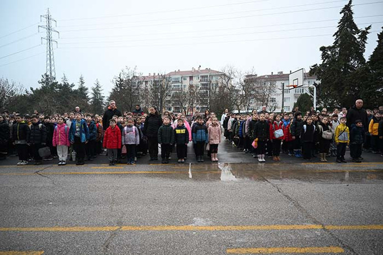 Tekirdağ’da da Süleymanpaşa İlkokulu öğrencileri saygı duruşunda bulundu.