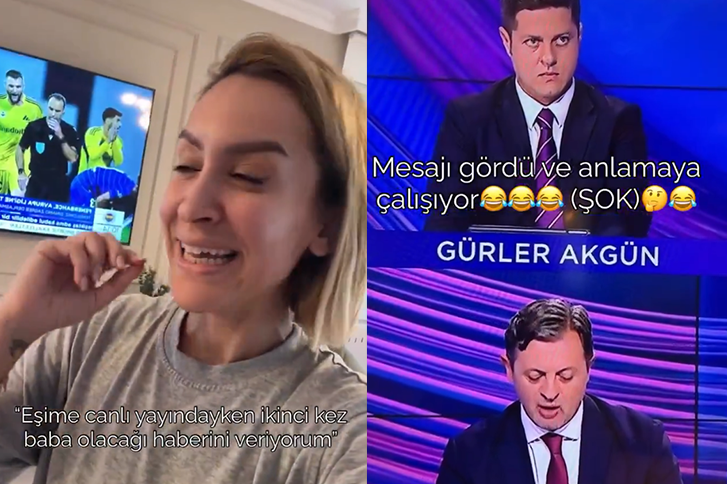 Akgün’ün eşi, sosyal medyada “Eşime canlı yayındayken ikinci kez baba olacağı haberini veriyorum” notuyla paylaştığı videoda, eşinin tepkisini kayda aldı.