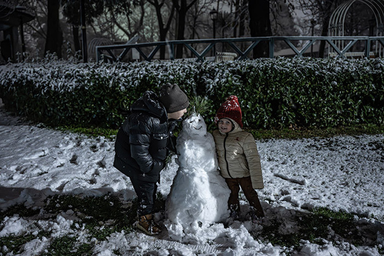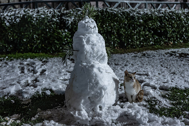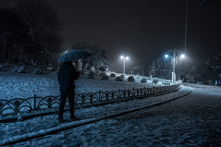 Yağış nedeniyle parklar, caddeler, sokaklar ve binaların çatıları beyaz örtüyle kaplandı.