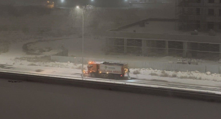 Büyükşehir Belediyesi ve Karayolları ekipleri, olumsuzluk yaşanmaması için yollarda kar küreme ve tuzlama çalışması başlattı.