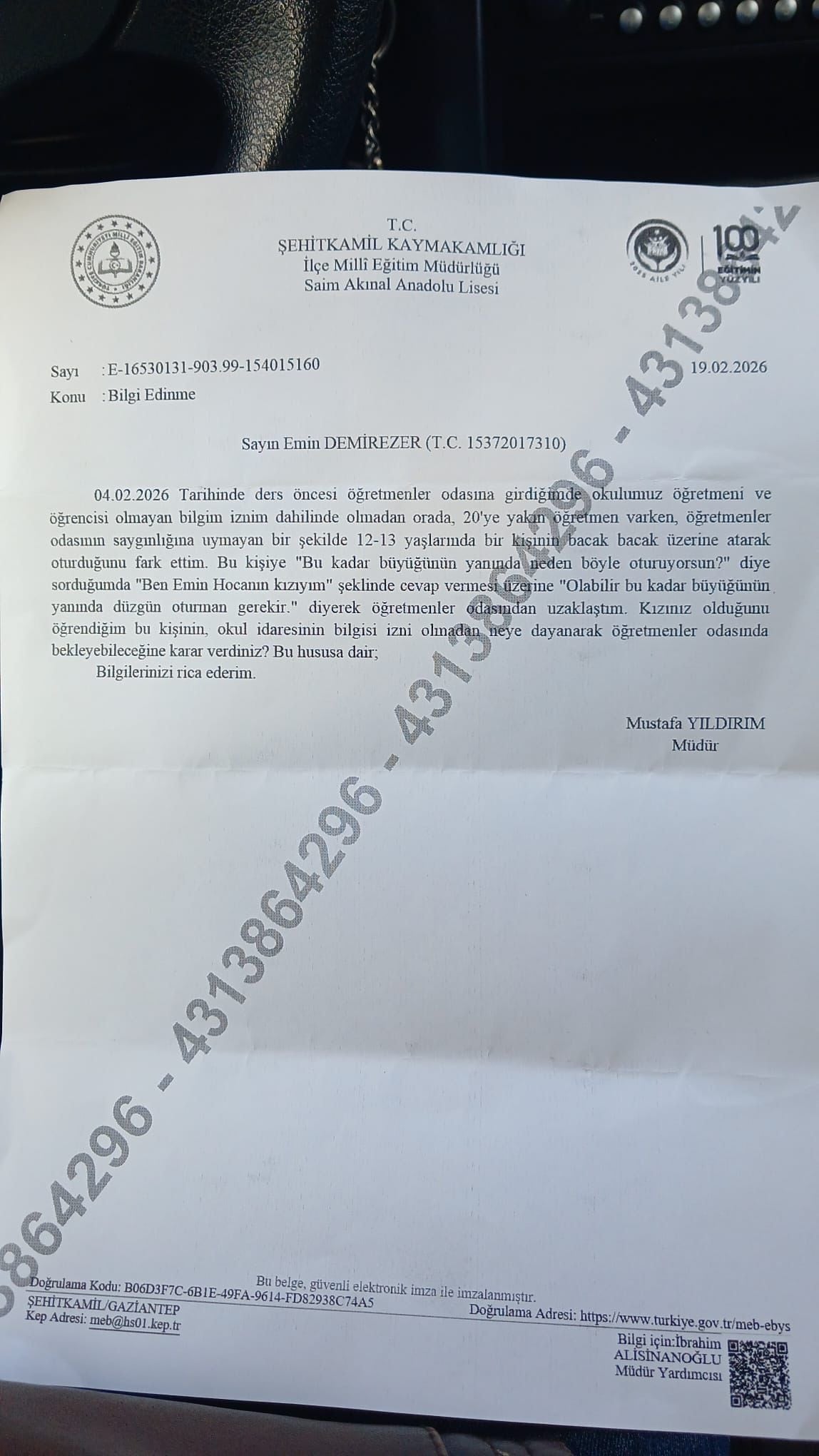 Açıklamada, 12 yaşındaki bir çocuğun davranışlarının resmi yazışmaya konu edilmesinin çocuk hakları, üstün yarar ilkesi ve özel hayatın korunması açısından ciddi ihlal olduğu vurgulandı. Eğitim kurumlarının görevinin çocukları yargılamak değil, korumak ve geliştirmek olduğu hatırlatıldı. Öte yandan, işlemin doğrudan öğretmene yöneltilmesinin kurum içi çalışma barışını zedelediği ve öğretmen üzerinde baskı oluşturduğu belirtilerek, durumun “idari baskı ve mobbing unsurları” taşıdığı ifade edildi. Kamuoyuna yansıyan iddialar arasında, okul müdürünün yakın bir akrabasının İlçe Millî Eğitim Müdürlüğü’nde görev yaptığı yönündeki bilgiler de yer aldı. Eğitim-İş, bu durumun sürecin tarafsızlığı ve objektifliği konusunda soru işaretleri yarattığını belirterek, iddiaların şeffaf biçimde açıklığa kavuşturulması çağrısında bulundu.